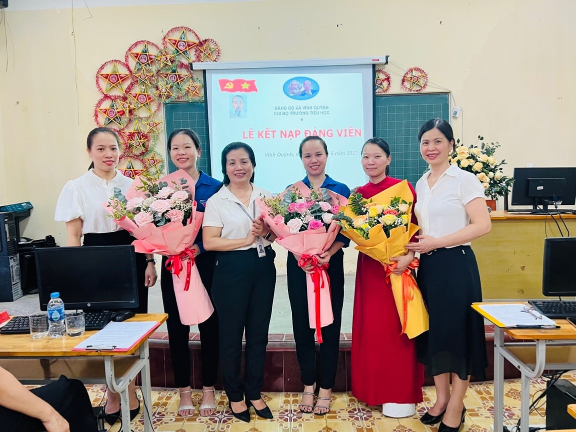 Hoà chung không khí tưng bừng của cả nước chào mừng 133 năm Ngày sinh Chủ tịch Hồ Chí Minh vĩ đại 19/5/1890 – 19/5/2023, đồng thời thực hiện Nghị quyết Đại hội Chi bộ Trường Tiểu học Vĩnh Quỳnh về việc phát triển Đảng viên, ngày 19/05/2023, Chi bộ trường Trường tiểu học Vĩnh Quỳnh đã long trọng tổ chức lễ kết nạp Đảng viên mới đối với ba quần chúng ưu tú: Phan Thị Thảo, Hoàng Thị Thảo và Nguyễn Thị Thuý Hằng.