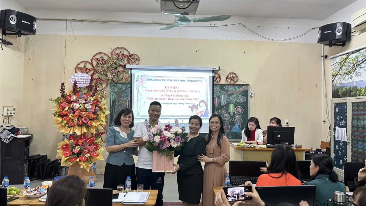 Hòa chung với không khí sôi nổi của cả nước, Công đoàn Trường Tiểu học Vĩnh Quỳnh tổ chức Chương trình kỷ niệm 113 năm Ngày Quốc tế Phụ nữ 8/3 và Khen thưởng “Giỏi việc nước - Đảm việc nhà”.