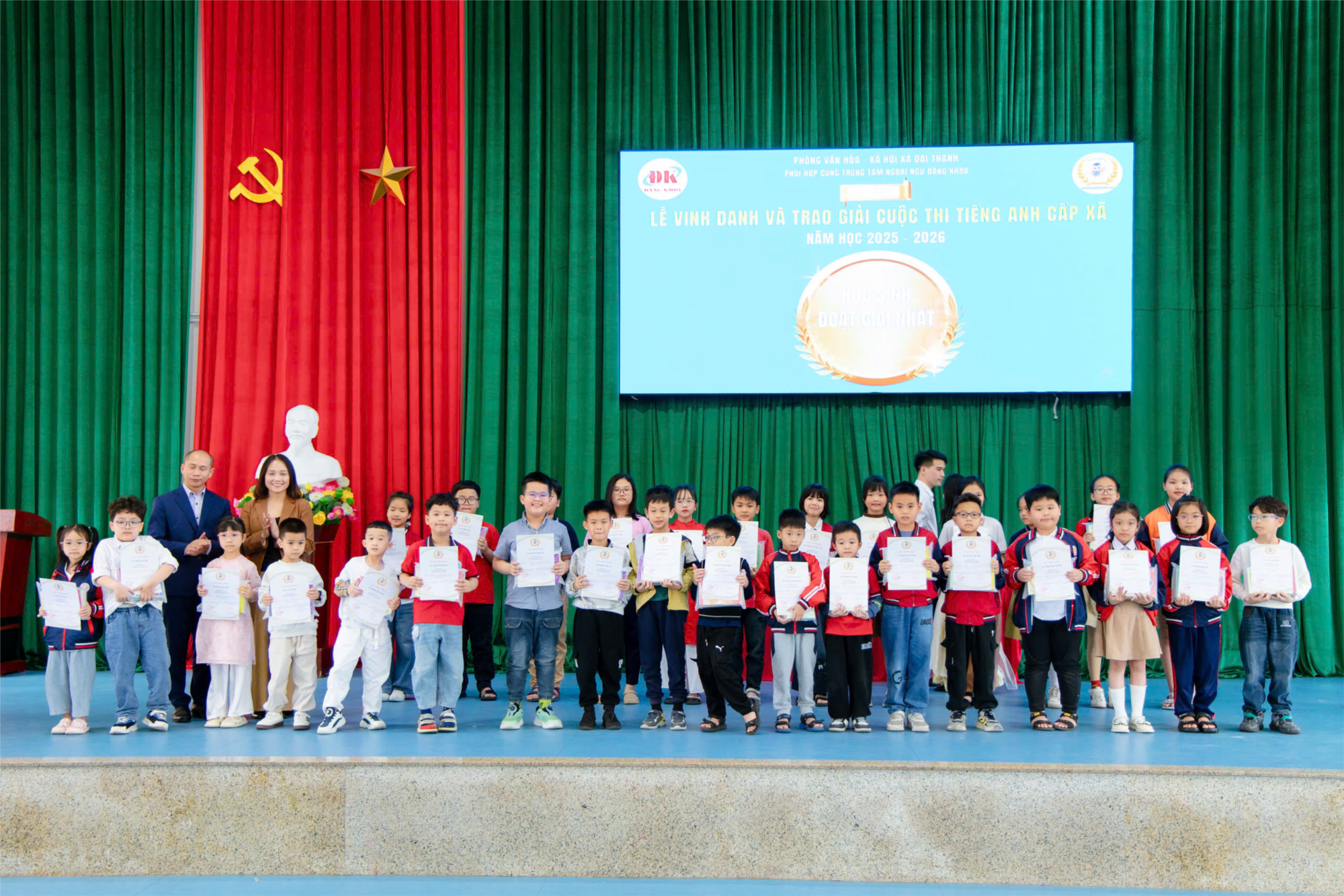 Lễ vinh danh và trao giải Cuộc thi tiếng Anh cấp xã năm học 2025 – 2026 đã diễn ra thành công tốt đẹp, để lại nhiều ấn tượng đối với các đại biểu, thầy cô giáo, phụ huynh và học sinh.