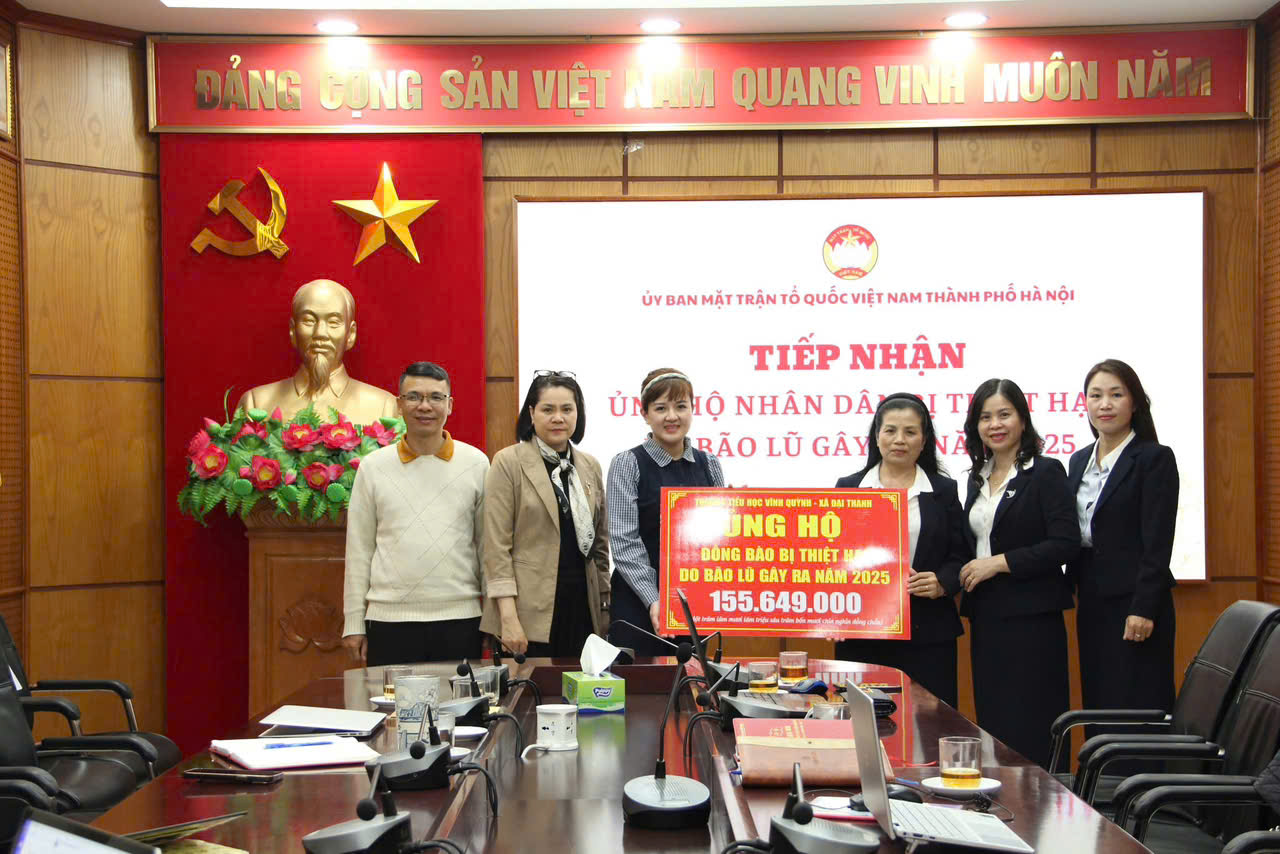 Chiều ngày 02/12/2025, đại diện nhà trường đã trao toàn bộ số tiền trên tới Ủy ban Mặt trận Tổ quốc Việt Nam Thành phố Hà Nội để kịp thời chuyển tới đồng bào các tỉnh miền Trung bị ảnh hưởng bởi lũ lụt. Ủy ban MTTQ Việt Nam Thành phố Hà Nội đã ghi nhận, tiếp nhận và gửi lời cảm ơn tới tập thể nhà trường trước nghĩa cử nhân ái, trách nhiệm và đầy tình người.