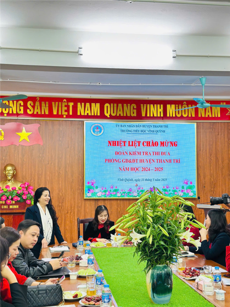 Thực hiện nhiệm vụ năm học 2024 – 2025, chiều ngày 31/3/2025, trường Tiểu học Vĩnh Quỳnh vinh dự đón đoàn kiểm tra thi đua của Phòng GD&ĐT huyện Thanh Trì về đánh giá các hoạt động giáo dục và phong trào thi đua trong năm học.