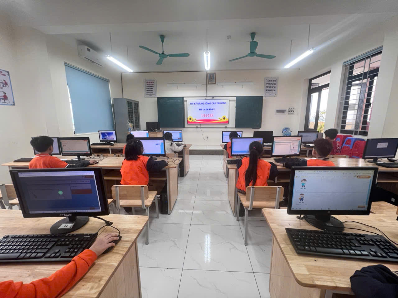 Để đảm bảo tính khách quan và nghiêm túc, kỳ thi có sự giám sát chặt chẽ từ Ban giám hiệu và đội ngũ giáo viên. Các giờ thi được diễn ra công bằng, minh bạch và đúng quy định. Trước giờ thi, các em học sinh đã có mặt đầy đủ, đăng nhập vào hệ thống phần mềm để tham gia kỳ thi với tâm thế hào hứng và quyết tâm. Nhiều em tỏ ra tự tin khi làm bài, thể hiện sự hiểu biết và khả năng xử lý tình huống linh hoạt. Một số em dù còn bỡ ngỡ nhưng vẫn cố gắng hoàn thành phần thi của mình. Không khí thi diễn ra nghiêm túc nhưng không căng thẳng, giúp học sinh phát huy tối đa khả năng của mình.