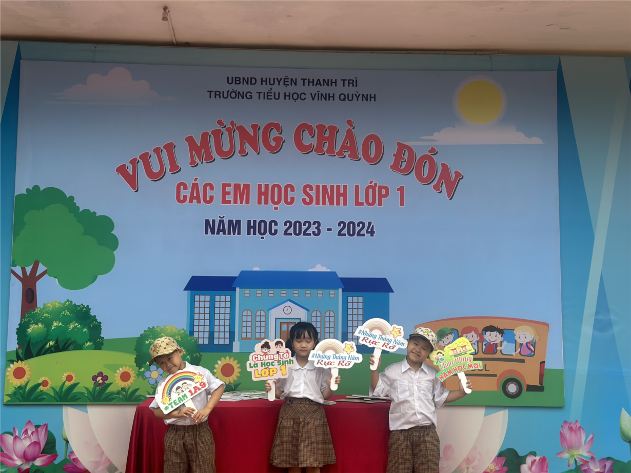 Xin chúc mừng các con học sinh đã chính thức trở thành những thành viên nhỏ tuổi nhất của ngôi trường Tiểu học Vĩnh Quỳnh. Từ hôm nay, các con đã trở thành học sinh lớp 1, là niềm tin, niềm hi vọng của ông bà cha mẹ. Cánh cổng trường mở ra - một thế giới mới ở ngôi trường Tiểu học Vĩnh Quỳnh với biết bao điều bổ ích thú vị, những trải nghiệm tuyệt vời đang chờ đón các con khám phá. Tất cả thầy cô giáo và các anh chị lớp 2, 3, 4,5 trường Tiểu học Vĩnh Quỳnh luôn dang rộng vòng tay, nồng nhiệt chào đón các con học sinh. Các con sẽ được sống trong sự yêu thương đùm bọc của thầy cô, bạn bè, được học tập, vui chơi trong ngôi trường giàu truyền thống. Hi vọng những hình ảnh của ngày đầu tiên đến trường sẽ luôn khắc sâu trong tâm hồn các em.